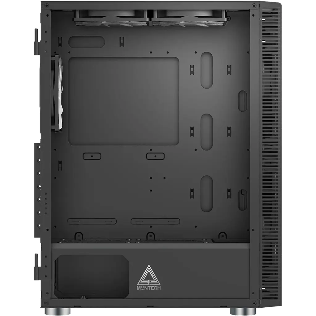 • Vista panorámica completa: el Montech X3 cuenta con paneles frontales y laterales de vidrio templado panorámicos, para que puedas presumir fácilmente de tu sistema de batalla y la iluminación RGB.