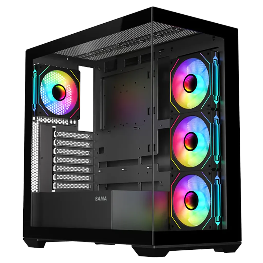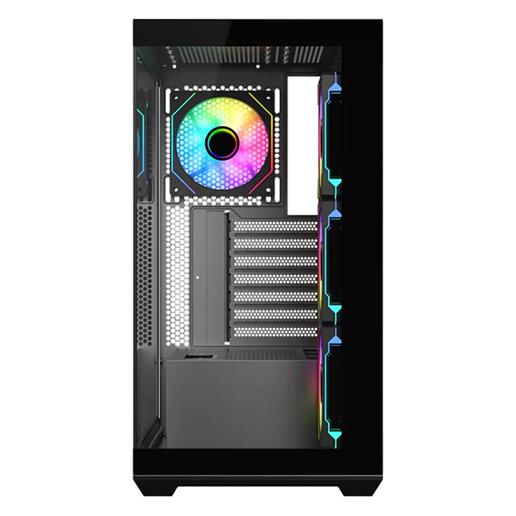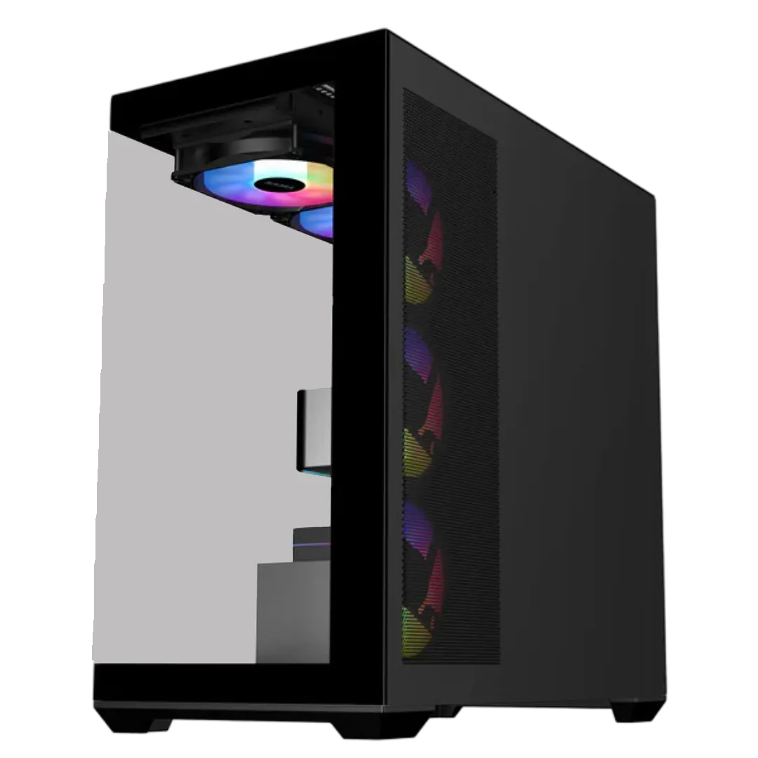 Espectáculo de luces ARGB listo para usar: 4 ventiladores ARGB de 120 mm preinstalados están conectados mediante el controlador de iluminación incluido, que se puede controlar fácilmente mediante el botón LED en la carcasa o administrar a través del software ARGB de la placa base.
