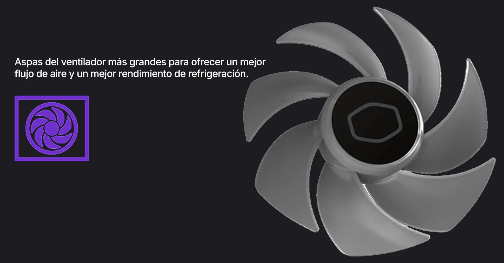 – Material del disipador: 4 tubos de calor / aletas de aluminio