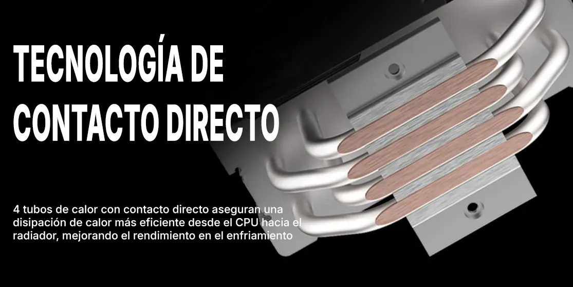 – Material del disipador: 4 tubos de calor / Contacto directo / Aletas de aluminio